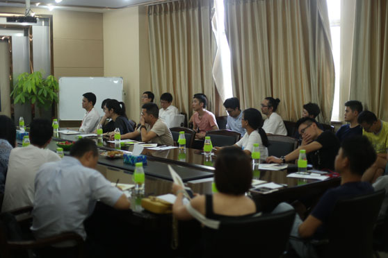 一輪企業(yè)參觀后,游學(xué)團(tuán)又轉(zhuǎn)至4樓會議室,期待衣品天成創(chuàng)始人杜立江的分享專場。