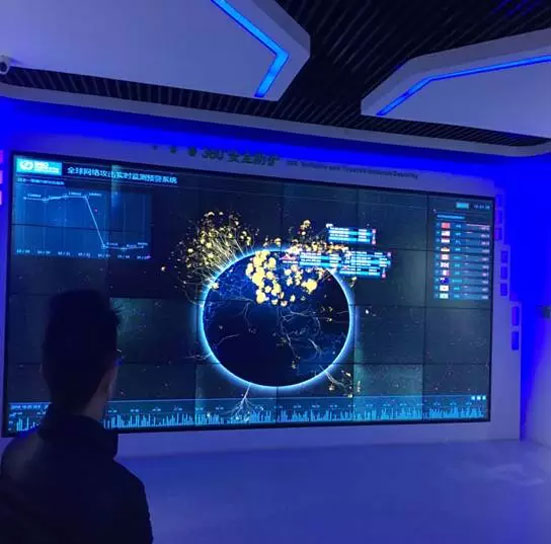 (上圖是360利用大數(shù)據(jù)技術研發(fā)的全球安全威脅熱圖+可視化的展示形式)