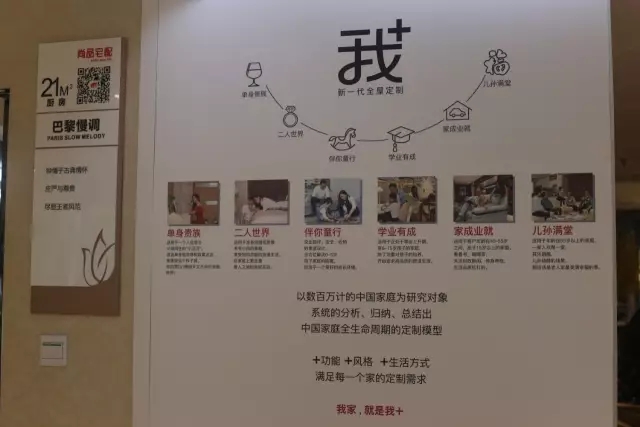 第一站我們來到市區(qū)的新居線下門店(O店),尚品宅配以數(shù)百萬的中國家庭為研究對象,系統(tǒng)的分析、歸納、總結(jié)出中國家庭全生命周期的定制模型,即單身貴族——二人世界——童程相伴——學有所成——事業(yè)有為——天倫之樂,我家就是我+。