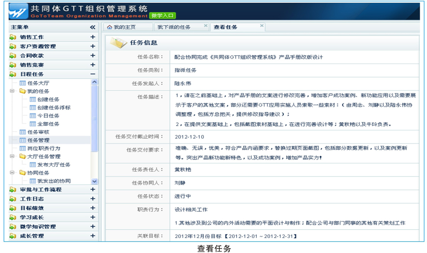通過任務(wù)布置和管理,解決了企業(yè)經(jīng)營管理中的執(zhí)行力問題,極大的提高了企業(yè)生產(chǎn)和經(jīng)營效能。