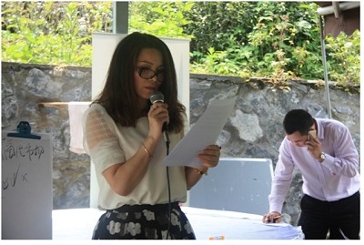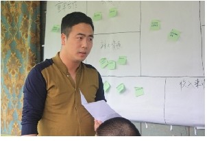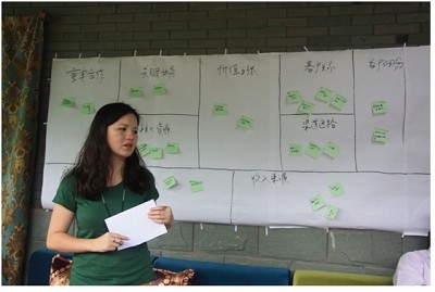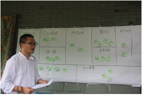 (圖為中國第一旅行女裝――綻放品牌創(chuàng)始人安麗(“茉莉”女士)按照曹老師提出的九步商業(yè)模式對自家企業(yè)進(jìn)行分析講解,并提出自身公司存在的優(yōu)勢與問題)