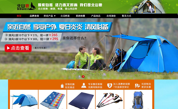 客戶公司簡介:北山狼戶外旅游用品有限公司是一家富有朝氣,蓬勃向上的企業(yè),專業(yè)生產(chǎn),銷售帳篷,睡袋,自動沖氣墊等戶外用品,"北山狼(BSWOLF)"品牌,通過我們不懈的努力,已經(jīng)被廣大驢友所認可,在行業(yè)內(nèi)取得了較高的知名度和良好的影響力。BSWolf(北山狼)公司生產(chǎn)經(jīng)營:帳篷、睡袋、充氣墊等戶外旅游用品,產(chǎn)品質(zhì)量一流,品質(zhì)保證,貨源充足,發(fā)貨快捷,秉承“用戶滿意就是我們的追求”的公司理念,以星級的營銷服務(wù)網(wǎng)絡(luò)與海內(nèi)外客商密切合作,共圖發(fā)展。