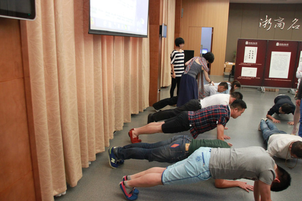 (上圖為會(huì)員在Lily老師的指導(dǎo)下,練習(xí)脊柱七步操,打造健康脊柱。)