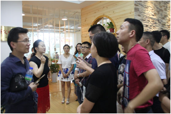 羚羊早安創(chuàng)始人正帶領(lǐng)全體共軍進行企業(yè)的參觀
